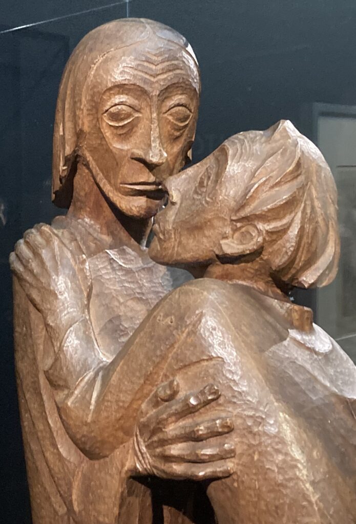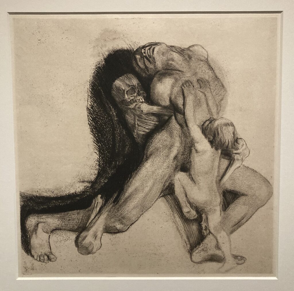 Faszinierend fand ich in „Gothic Modern“ die Exponate vieler weiblicher Kunstschaffenden. Großartig etwa die Blätter von Käthe Kollwitz, von denen die Albertina viele besitzt, oder die Gemälde von Paula Modersohn-Becker und von der Finnin Helene Schjerfbeck (von der ich noch nie gehört hatte). Lange stand ich auch vor einer Kopie von Hans Holbein d.J., „Der tote Christus im Grab“, dessen Original ich schon mal in einem Adventmail am Heiligen Abend aufgriff. Und spannend zu lesen, dass Matthias Grünewalds Isenheimer Altar, den ich in Colmar anbetete, auch für viele Künstler:innen rund um 1900 zur Pilgerstätte wurde.